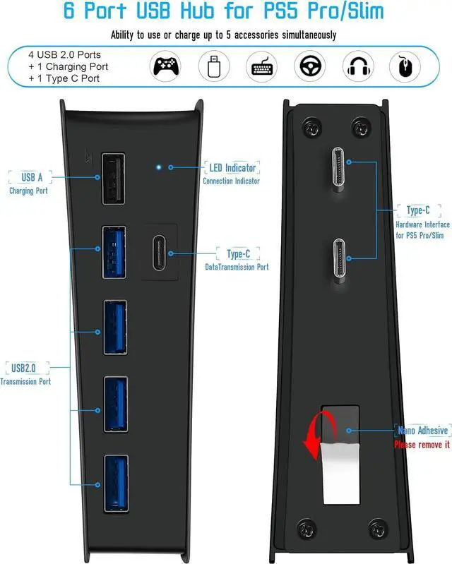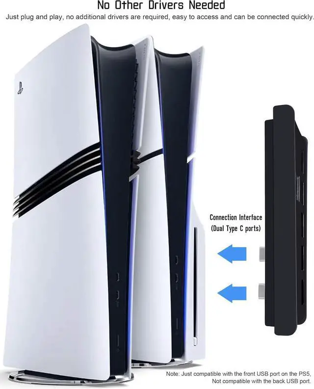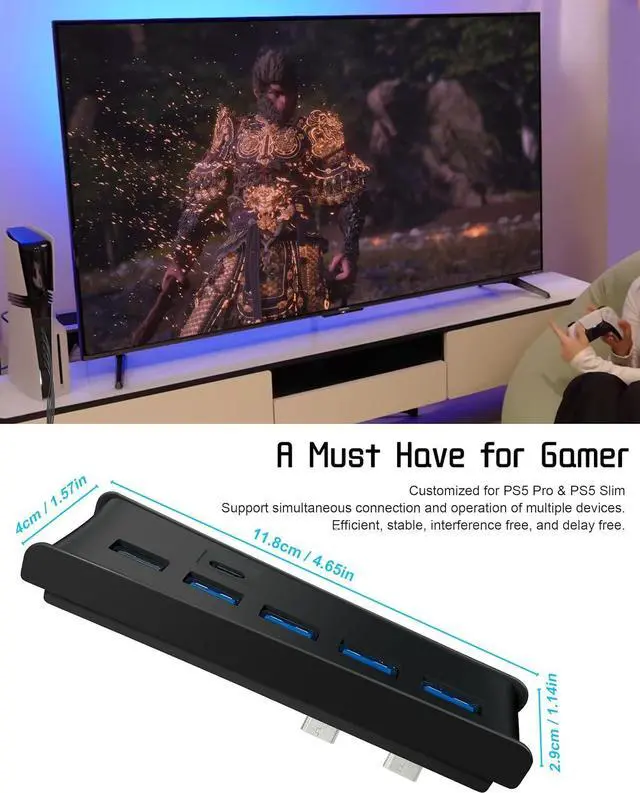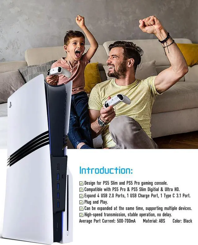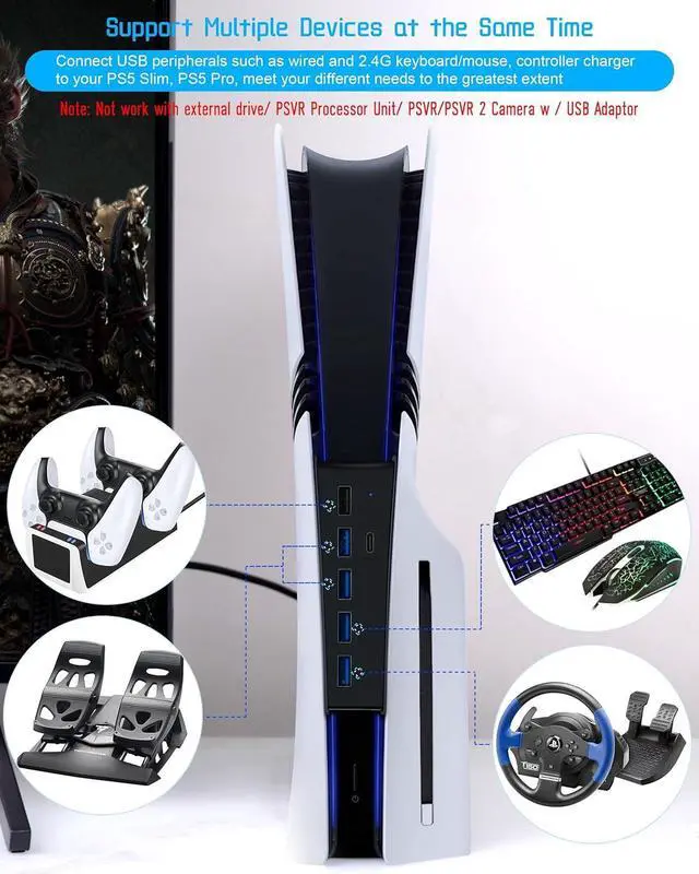 Expansion Accessories for PS5 Pro/Slim: Connect USB peripherals such as wired and 2.4G keyboard/mouse, controller charger to your PS5 Slim/Pro, meet your different needs to the greatest extent