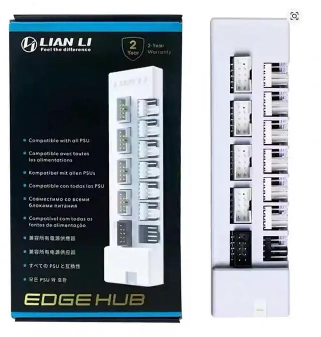 The external USB and fan PWM hub module offers versatile connectivity options. It can be attached directly to the PSU or connected via a PCIe power interface inside the case.