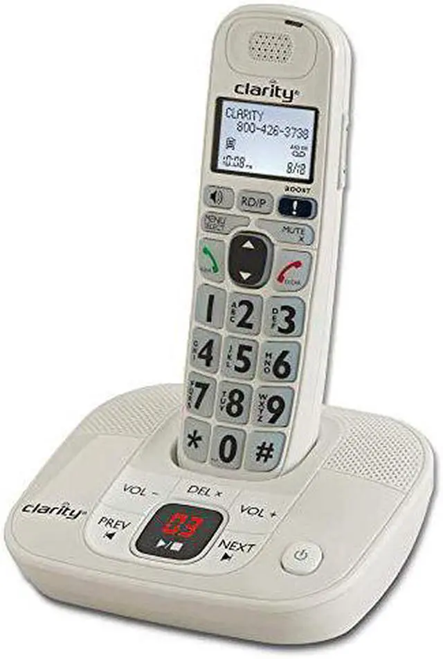 - Clarity amplified/low vision cordless phone- Patented Clarity Power technology clearly amplifies incoming sounds up to 30dB- DECT 6.0 interference-free technology- Adjustable tone control- Digital answering machine- Loud an