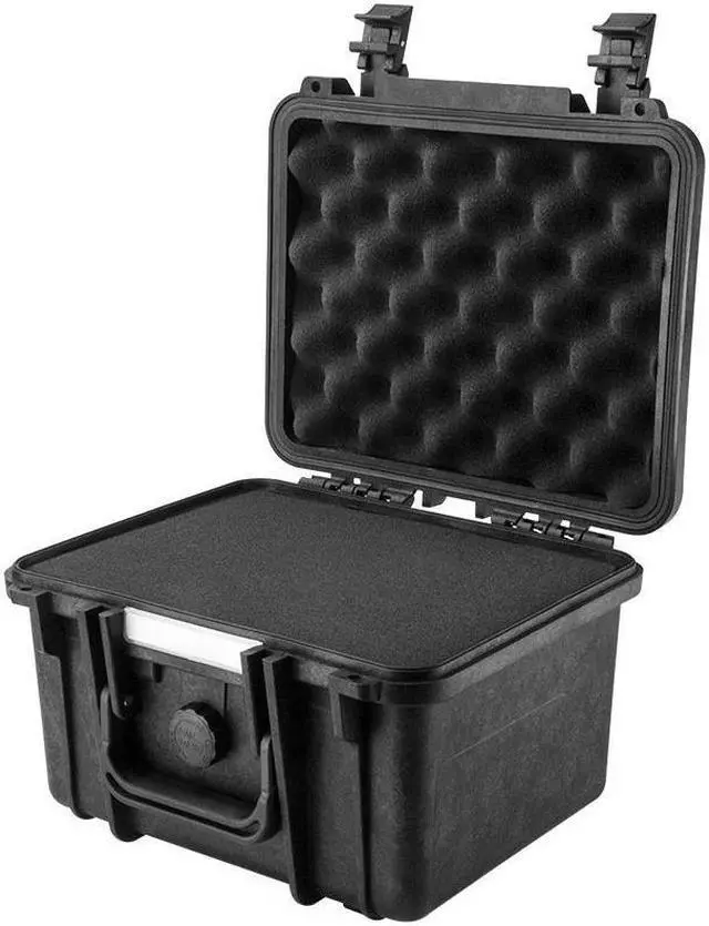 Inside, the case boasts two layers of perforated cubed foam, which can be customized to snugly fit and cushion your DSLR cameras, GoPro cameras, compact video cameras, sport optics, smartphones, jewelry, or other valuables. This shockproof foam interior is designed to absorb impacts and prevent damage to the contents during transit or storage.