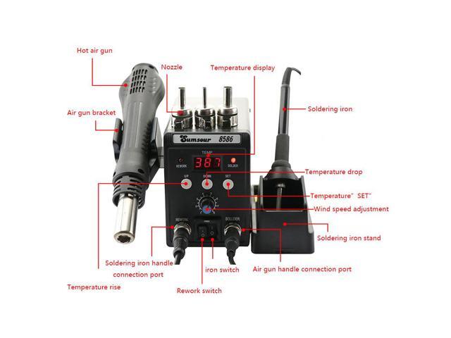 2 in 1 Soldering Station 8586 Digital Display SMD Rework Hot Air Gun Solder Iron 220V ESD Welding Desoldering Repair Tools