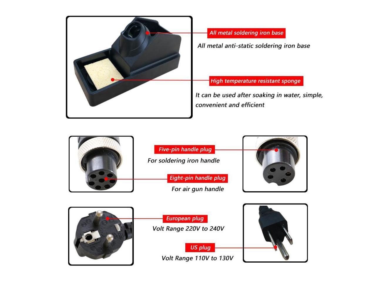 - Automatic cooling function for effectively prolonging the heater's life and protecting the hot air gun;