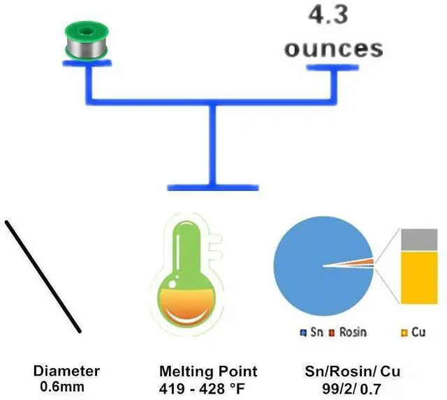 - [Perfect soldering capability] -- This wire has a low melting point, flow smoothly, fast soldering speed and strong solder joints.