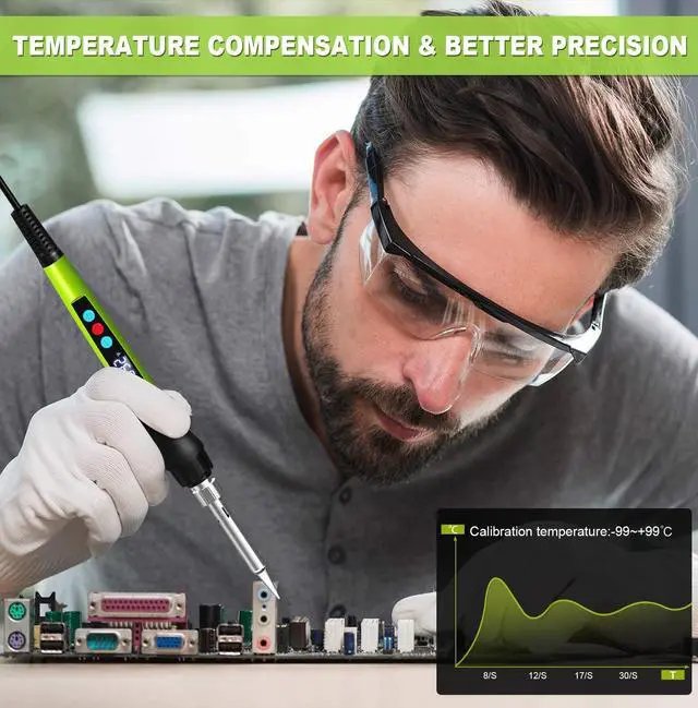 FAST HEAT UP: Made with a high quality ceramic core and 100W high power, this soldering iron kit reaches the desired working temperature in just 15 seconds. The temperature calibration function ensures that precise temperature control is obtained.