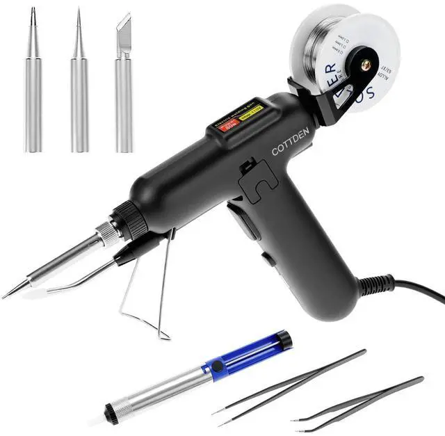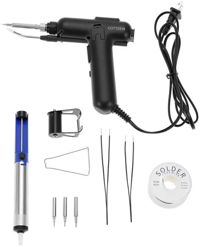 Includes all essential tools such as solder wire, desoldering pump, tweezers, and multiple soldering iron tips.