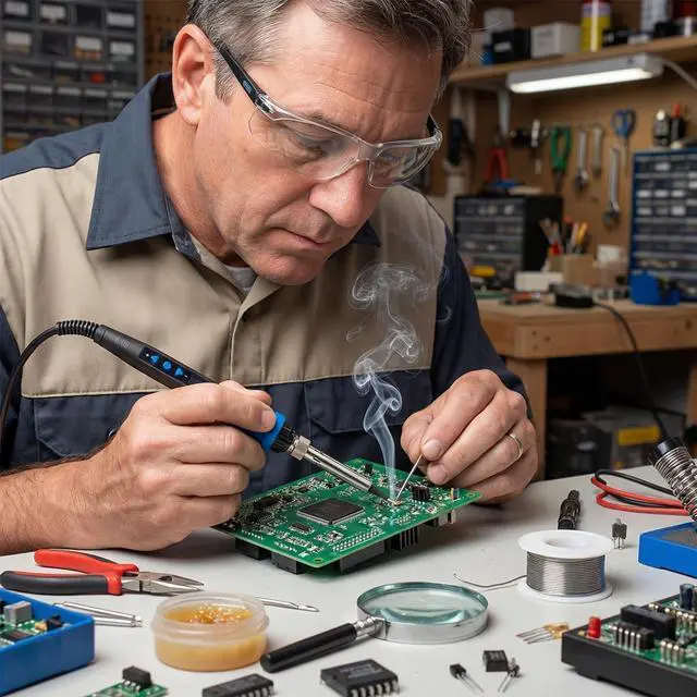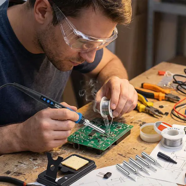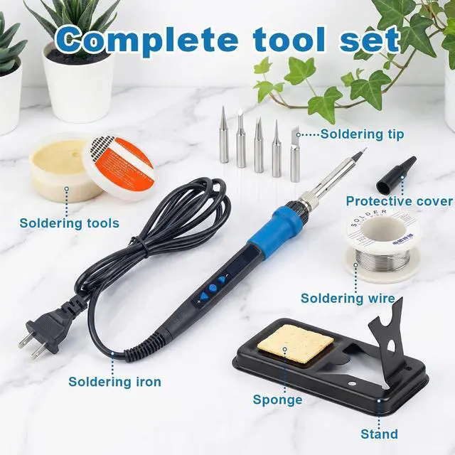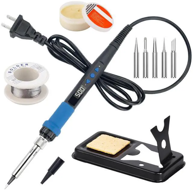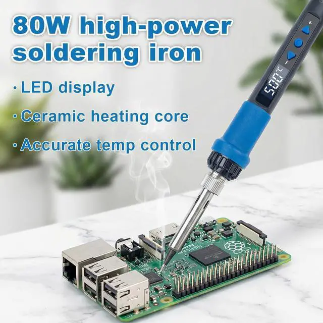 Complete Soldering Kit for Electronics: Includes 80W soldering iron, five precision tips, solder wire, metal stand, and sponge; ideal for electronics repair, circuit boards, and soldering projects