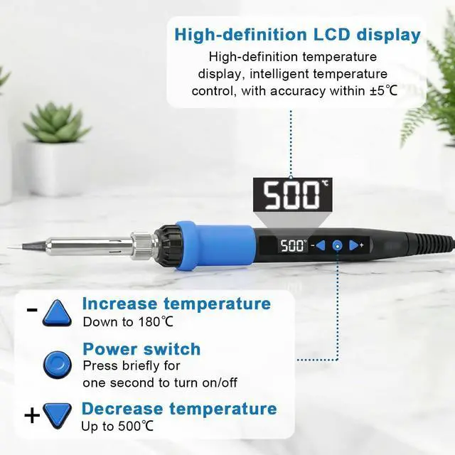 LED Digital Display & Temperature Control: Adjustable from 180 to 500; clearly visible LED screen and button controls allow accurate temperature monitoring