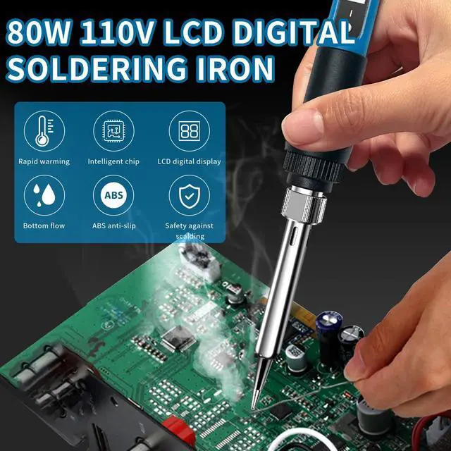 Soldering iron kit, 110V, 80W, fast heating within 10 seconds LCD digital adjustable temperature soldering iron gun, thermostatic soldering iron kit for electronic equipment