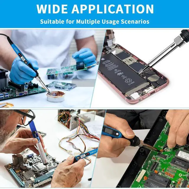 4.LIGHTWEIGHT AND QUICK, WIDELY USABLE: Compared with a large soldering iron station, this lightweight electronic soldering kit is easy to carry, plug and play. You can widely use this soldering kit for soldering circuit boards, home DIY soldering, jewelry soldering, home appliances and electronics repair, etc.