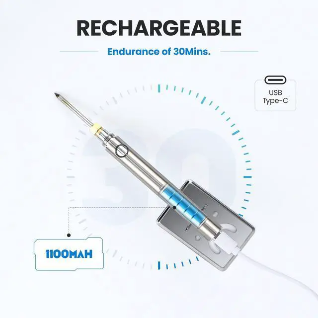 Designed with new Type-c and usb port, the soldering kit could be charged from battery pack or socket. It takes 2.5 hours to get full charge.