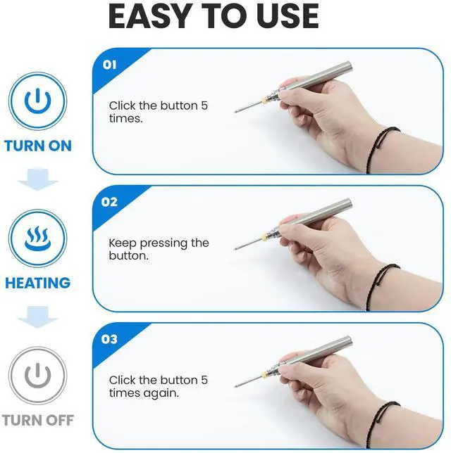 3.NOTICE: To prevent being burned, please DON'T touch soldering iron tip because it's very hot after use.