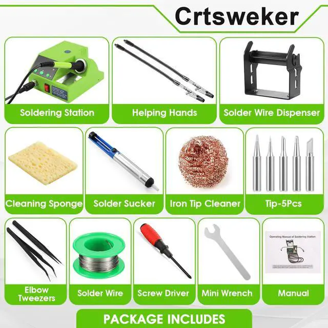 WIDELY APPLICATIONThe compact soldering station helps save valuable work space and is suitable for beginners and welders using different shaped soldering tips to weld circuit boards, home DIY, crafts, and repair mobile phones, appliances and electronics.