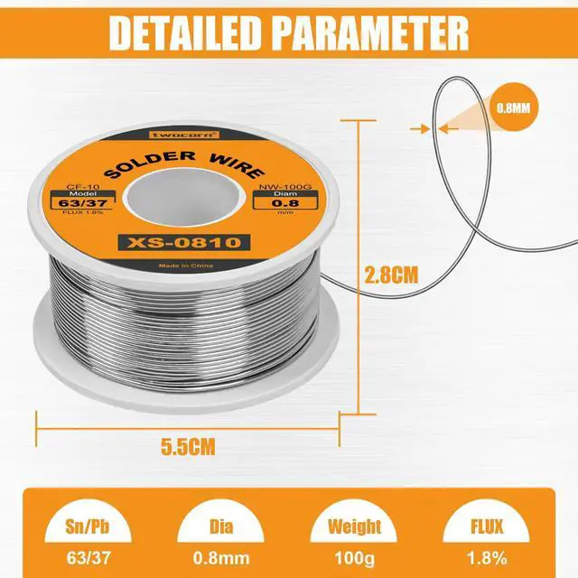 Specifications: The solder wire diameter is 0.8mm(0.0315 in) Weight is 100g(0.22 lb) for easy portability.