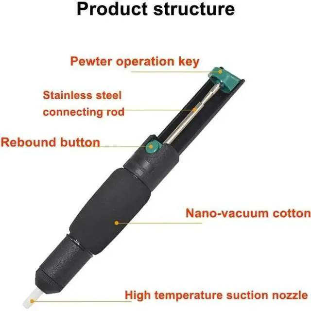 High efficiency solder sucker - the desoldering pump designed with double ring and "vacuum" open button, you can remove solder from circuit board effectively by cocking it and pressing the trigger button with one hand.