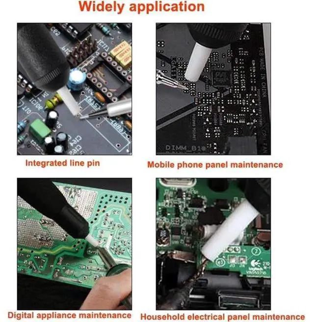 ApplicationThis practical tool is suitable for precision instrument cleaning, laboratory work, and industrial soldering. It helps remove solder and correct errors on small PCB boards.