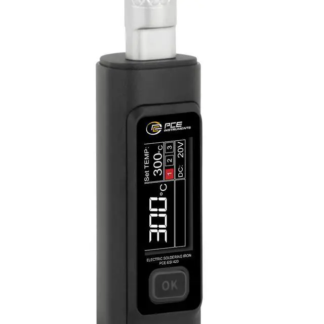 The Soldering iron / Soldering device is the perfect tool for fine soldering work and quick repairs. With an adjustable temperature range of 100 to 450 °C and an impressive heat-up time of less than 5 seconds, it allows you to work quickly and efficiently. Thanks to its ergonomic design, the Soldering iron / Soldering device sits comfortably in the hand and enables precise handling.