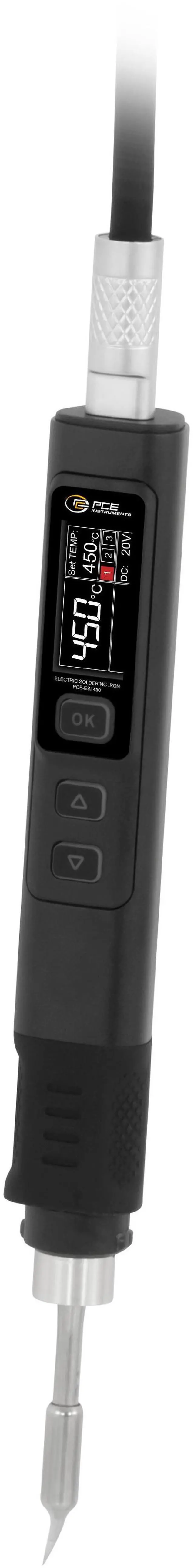 The Soldering iron / Soldering device is the perfect tool for fine soldering work and quick repairs. With an adjustable temperature range of 100 to 450°C / 212°F to 842°F and an impressive heat-up time of less than 5 seconds, it allows you to work quickly and efficiently. Thanks to its ergonomic design, the Soldering iron / Soldering device sits comfortably in the hand and enables precise handling.