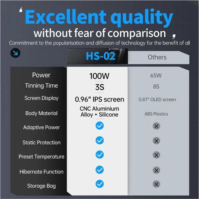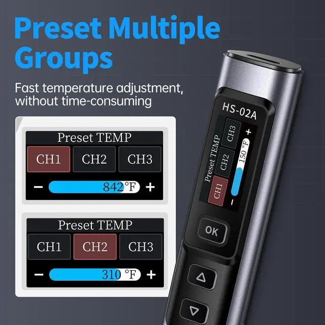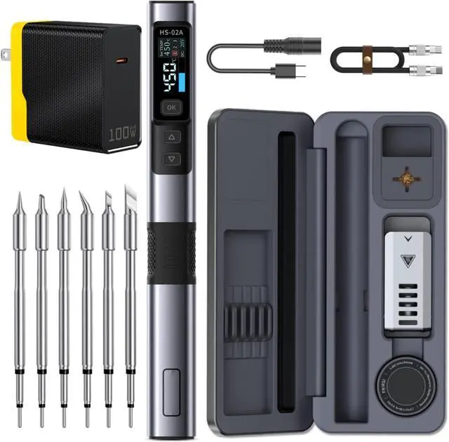 Comprehensive AccessoriesThe HS02A comes with 5 soldering tips (K, KU, JS, I, C2, B). The integrated design allows the iron to heat up quickly and maintain a stable temperature. The included 100W charging adapter lets you get started right away.