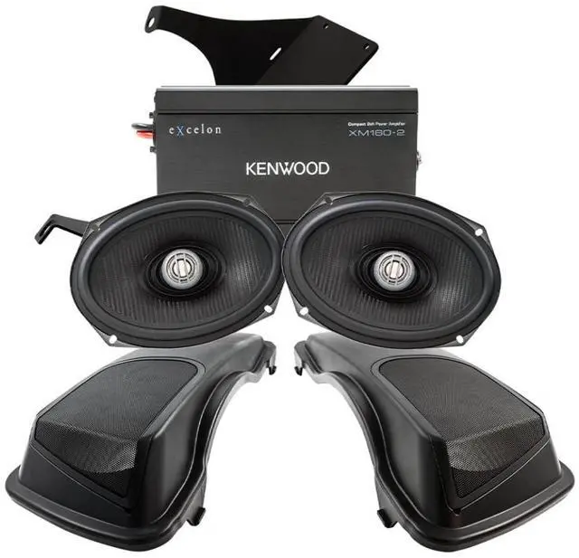 The Kenwood P-HD2RSG-98 package consists of a 2-channel power amplifier and 6X9" speakers & LID kit specifically designed for select 1998-2013 Harley-Davidson motorcycles, offering a plug-and-play solution for enhanced audio performance.