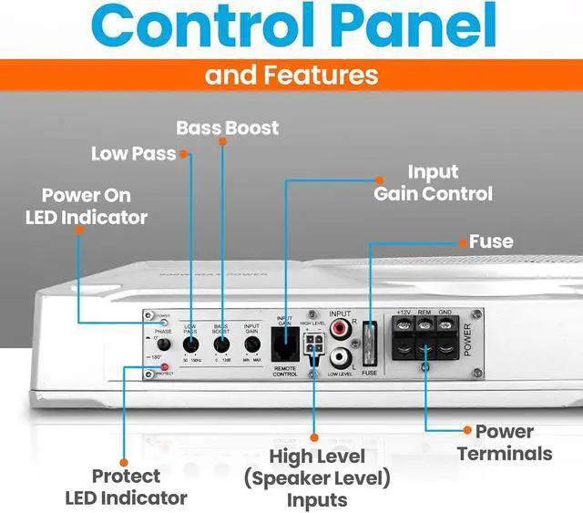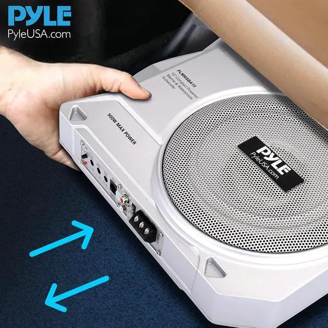 - BUILT-IN AMPLIFIER: The integrated amp in the compact subwoofer features low pass crossovers & control for adjusting input sensitivity from 0.12V to 3.5V. Includes variable bass boost, control the subwoofer level w/ the remote level control module