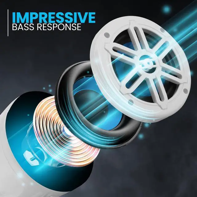 The Pyle 5.25 Waterproof Marine UTV Off-Road Speakers are designed for outdoor enthusiasts and off-road adventurers who need high-performance sound in extreme environments. These compact, durable speakers are perfect for mounting on UTVs, ATVs, Jeeps, or marine watercraft. With a waterproof IP-X5 rating, these speakers deliver impressive bass and clear high frequencies with a 5.25 woofer and a 1.0 titanium dome tweeter. The rotatable mounting bracket allows for flexible installation, and the rugged construction ensures they can withstand the toughest conditions. Whether you're hitting the trails or cruising the waters, these off-road speakers provide powerful, full-range stereo sound.