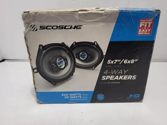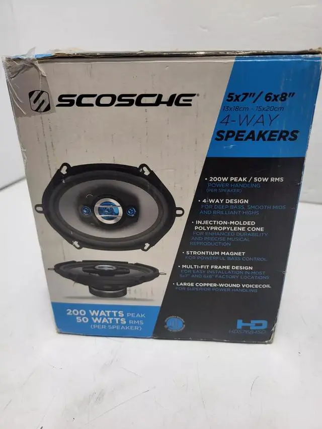 Upgrade your car audio experience with the Scosche HD5684SD 5"x7" / 6"x8" 4-Way Speakers. Designed for powerful, high-fidelity sound, these speakers deliver 200 watts peak power and 50 watts RMS, ensuring rich bass, clear mids, and crisp highs. The 4-way design enhances audio separation, providing a balanced and immersive listening experience. Built for durability and easy installation, they fit most factory speaker locations, making them a perfect upgrade for your vehicles sound system.