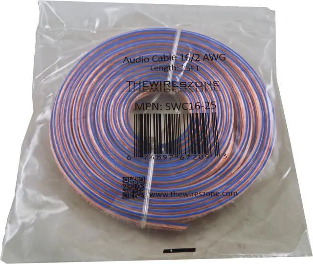 2 x 16 AWG 25ft Speaker Wire