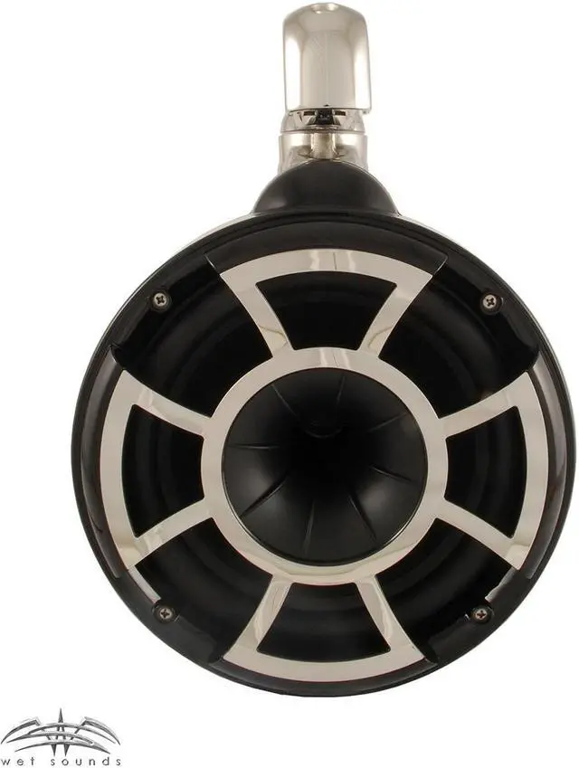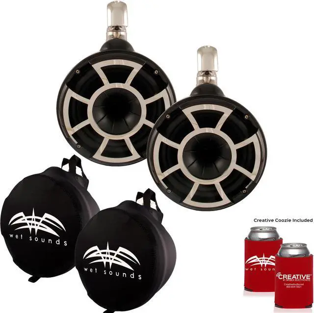This bundle includes a pair of Wet Sounds REV8B-SC Revolution 8" EFG 4 ohm EFG HLCD Tower Speakers and a set of Wet Sounds Suitz 8" Speaker Covers