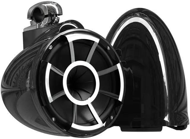 The Revolution Series uses our proprietary REV TEC technology. Unlike most conventional designs, REV TEC technology provides remarkable volume and amazing full range sound quality on axis and off axis at long distances. Extensive acoustic testing has confirmed these speakers ability to project volume at 80 feet and beyond without any loss of detail or information. Not only does the Revolution series achieve volume and sound quality at a minimum of 80 ft, but with the REV TEC technology the rider can enjoy quality sound while riding outside the wake and being almost parallel to boat. Sold in pairs.