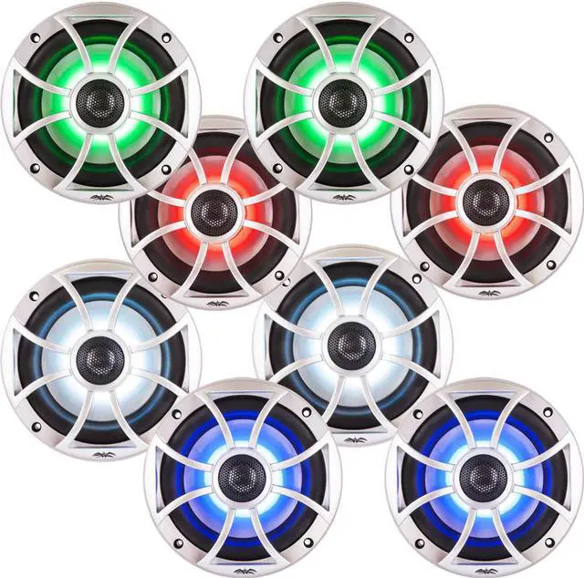 This bundle contains Four pairs of Wet Sounds XS-65i-S-RGB Silver 6.5" RGB LED 60 Watt RMS Speakers