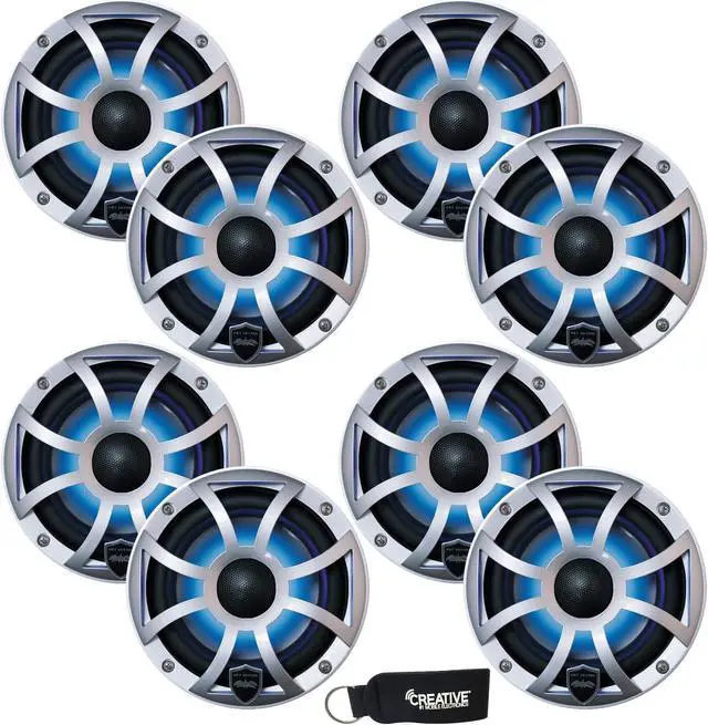 Four Pairs Of Wet Sounds REVO 6-XSS Silver Open XS Grille 6.5 Inch Coaxial Speakers