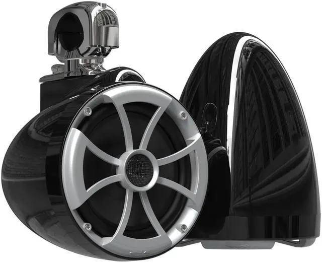The ICON Series is an extreme performance tower speaker designed for those that crave a full mid bass sound and clean detailed highs in a small form factor. The ICON series are designed for full sound in and around the boat and wake surfing range. The ICON 8 utilizes an 8 inch continuous cone mid bass driver with a grille mounted pure 1 inch titanium tweeter in a smaller form factor housing size usually found with smaller 6.5 inch speakers. Supreme functionality with multiple universal clamp configurations. Sold in pairs.