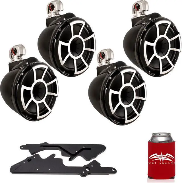 This bundle includes two pairs of white Wet Sounds REV10 10" Swivel Clamp tower speakers & black adapters for dual tower speakers on Malibu G3 Towers