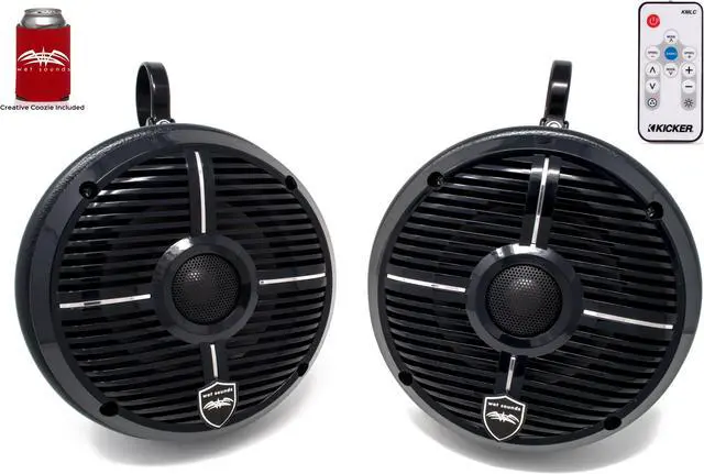 Wet Sounds REVO 6-XWB Black Closed XW Grille 6.5 Inch Coaxial Speakers (pair), Kicker KMLC RGB LED Controller, & SSV Works Roll Cage Mount Speaker Enclosures with 1.75" Clamps.
