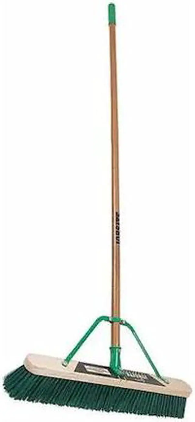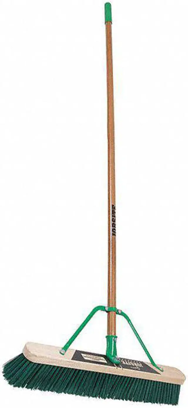 Broom Head and Handle, Broom Style Push Broom, Sweep Face 24 in, Trim Length 3 1/8 in, Basic Bristle Material Synthetic, Specific Bristle Material PET, Bristle Color Green, Color Coding System No, Broom Handle Material Wood, Broom Handle Tip Material Wood, Broom Handle Diameter 15/16 in, Broom Handle Length 60 in, Broom Handle Color Black, Broom Block Material Wood, Block Size 24 in, Broom Connection Type Bolt-On, Broom Application Rough, Semi-Smooth, Broom Grade Medium-Duty