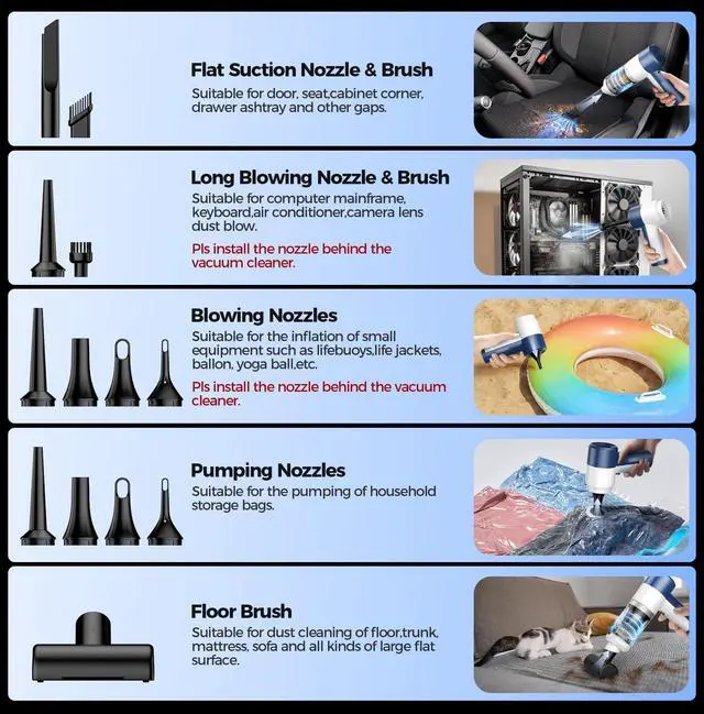 With multipls accessories, our vacuum cleaner can turn everyday tasks into fantastic experience and ensure a fresh, dust-free home, car, and office environment.