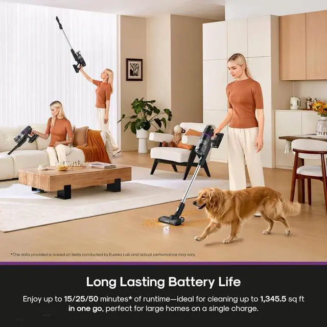 LONG-LASTING: Delivers up to 50-minute runtime with a detachable lithium-ion battery (15 minutes in High Mode). Extendable via optional battery pack. Cleans spaces up to 1, 345.5 sq. ft. (Default startup: Mid Mode).