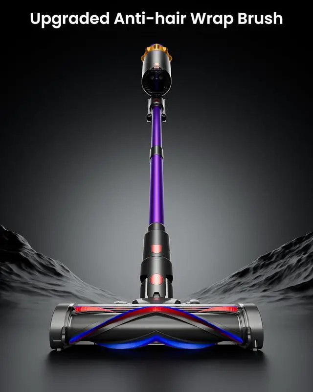 [Upgraded Anti-Tangle Floor Brush] Upgraded details! We have upgraded the single bristle of the roller brush to a combination of soft and hard bristles. This roller brush can better clean different types of floors and achieve deep and efficient cleaning. The V-shaped design of the roller brush combined with the toothed comb of the floor brush can effectively reduce hair tangles.