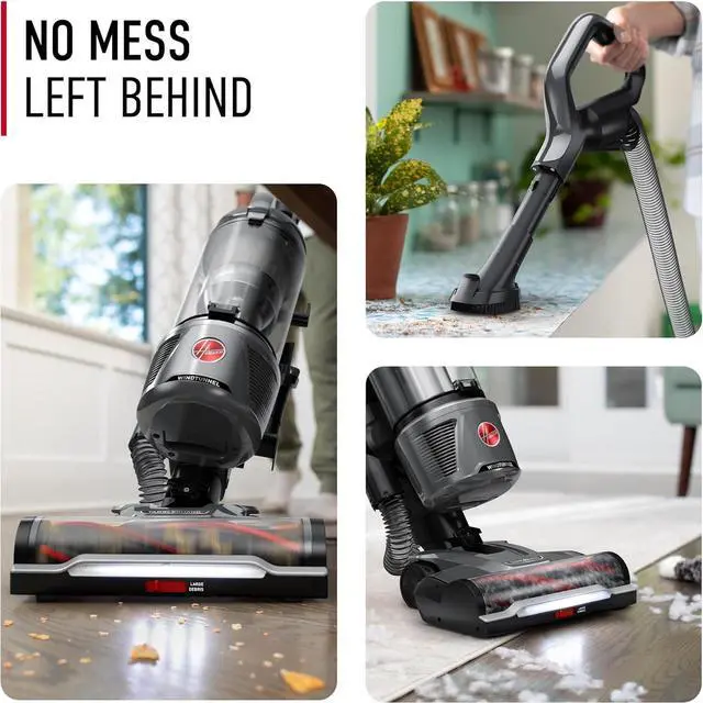 QUALITY FILTRATION: With Hoovers Tangle Guard to prevent hair from wrapping around the brush roll and a HEPA media filter to trap dirt, dust and pollen, this vacuum gets the job done right. Easy-empty dirt cup for quick post-cleanup.