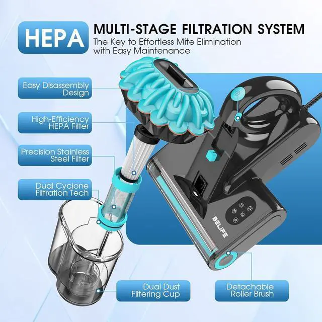 3-IN-1 Tech: With 253.7 nm UV lights, 140°F (60) hot air and a high-frequency rotating brush, our vacuum cleaner removes 99.99 % of allergens from mattresses, sofas, baby cribs, pet beds, and carpets. Ideal for households with pets and babies.