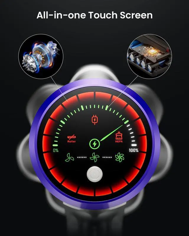 Button Start and Touch Control The vacuum cleaner' s power switch is located on the touchscreen. Press it once to start instantly. No need to worry about accidentally closing it. There are three suction icons on the touchscreen; simply touch any icon to select between threee modes. Just one touch, no waiting.