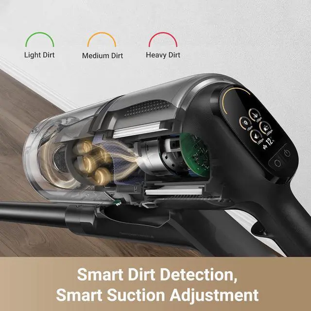 Innovative Dust Reveal Technology: Detects hidden dust and debris with ease, allowing you to focus your cleaning efforts where it matters most. The vacuums auto suction adjustment optimizes power based on the detected dirt level.