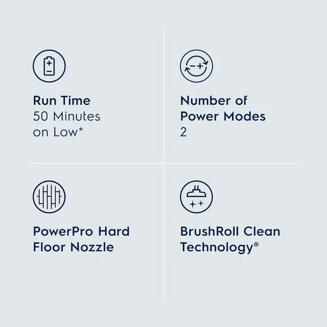 Long-Lasting Cordless Power: Enjoy up to 50 minutes* of run time with the high-performance battery, providing consistent cleaning power without needing to recharge