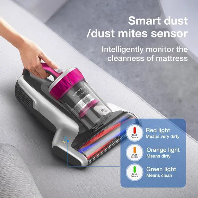 Dual Sensor Technology the built-in sensor detects the amount of dirt and dust on the work surface. When the LED is red, you stand in front of a heavily soiled surface, when the surface is clean and free from allergens, the LED turns green.