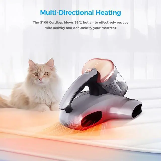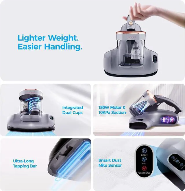 Cordless, Lightweight Design for Handier CleaningThe JIGOO S100 Cordless Mattress Vacuum Cleaner offers you great convenience and ease of use during cleaning, as you dont have to worry about finding an outlet or dealing with a cord getting in the way, making it easier to maneuver and clean hard-to-reach areas. With a lightweight construction, it is easier to operate and carry around.