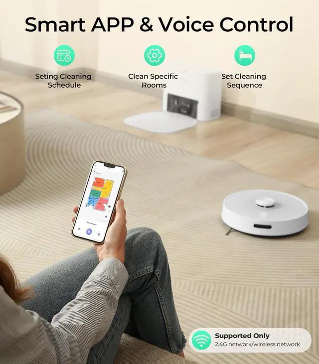 Warm Tip: 1. Please connect the application first (2GWiFi); 2. After receiving the product, please be sure to press the side brush tightly before using, or the cleaning process is easy to fall off; 3. The climbing height of our products is 18mm, if the thickness of the carpets is higher than 18mm, please be careful to buy.