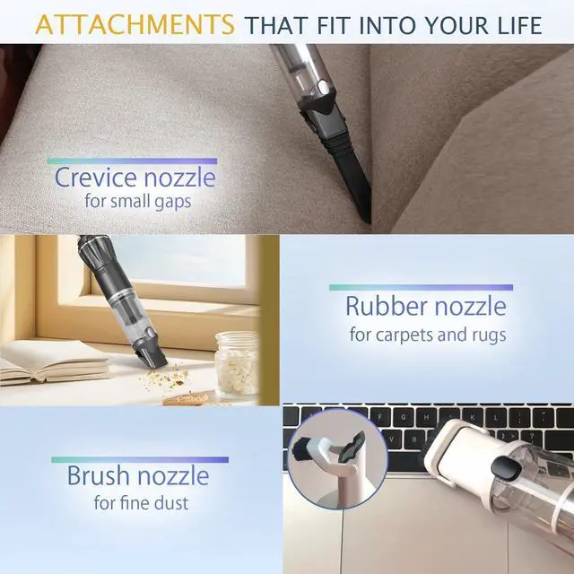 Outstanding Filtration System - 13-level HepaThe handheld vacuum cleaner adopts high density 13-level Hepa which removes up to 99.95 % of fine particles as small as 0.1 um such as tobacco ash and pollen (while regular vacuums adopts F9 hepa which can only purify 85%). The Stainless Steel Mesh Cover outside the hepa helps to separate fine dust and can be washed with running water to keep good suction of the vacuum.