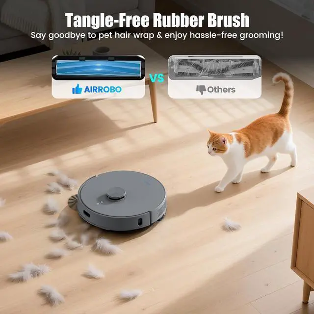 5500Pa Ultra-Strong Suction: The AIRROBO T25+ robot vacuum equipped with 5-level suction modesExperience unparalleled cleaning power with 5500Pa suction, effortlessly lifting dirt, dust, and debris from hard floors and carpets, easy cleanup of pet hair and stubborn stains. Completely free your hands and enjoy more free time!