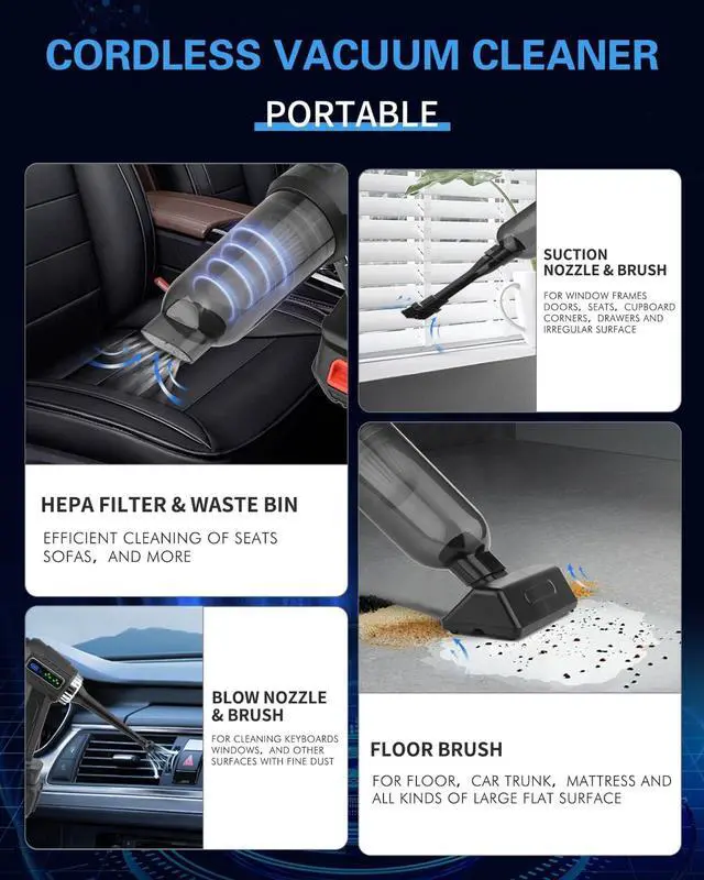 23, 000Pa Powerful Suction The high-speed brushless motor delivers 23, 000Pa of powerful suction to pick up stubborn sand, dust, pet hair, and debris with ease. The Quotor car vacuum cleaner delivers up to 80% more suction power, the perfect solution to your suction concerns.