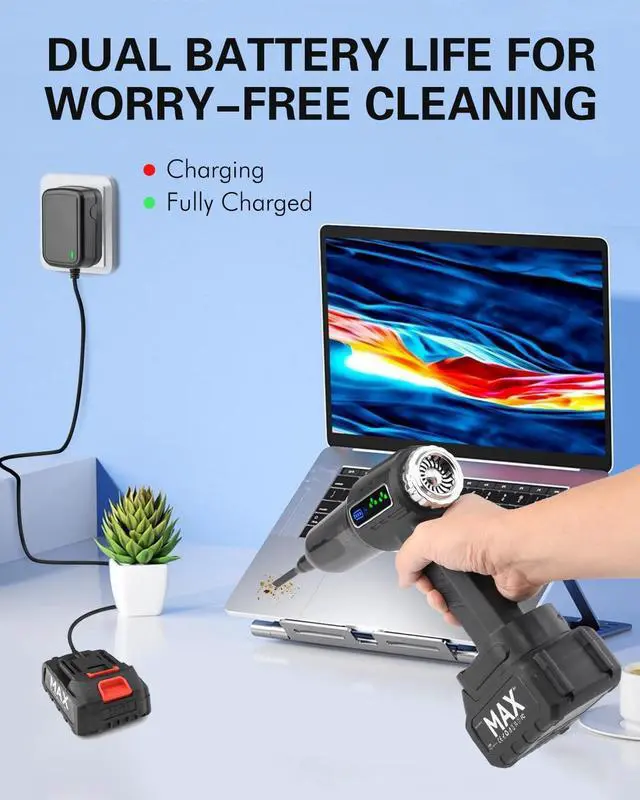 Dual Batteries for 45 Minutes of Battery Life The new dual battery design of the cordless handheld vacuum cleaner allows each battery to last up to 20 minutes or more on high speed, and the two batteries can be replaced and alternated to provide more than 45 minutes of battery life. A single battery can provide more than 30 minutes on low speed. Far more than similar products 15 minutes. The Sealight handheld vacuum cleaner is designed with dual batteries, which can last up to 30 minutes, much longer than the 15 minutes of other similar products.
